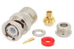 Our jack BMA right angle 2 hole flange to male BNC cable assembly uses a semi-rigid cable type that is 50 Ohm. Pasternack PE3W17576LF/HS BMA jack right angle 2 hole flange to BNC male cable assembly is constructed with RG402 Tinned coax.