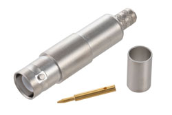 PE3W16800 is a SHV jack to F male cable using RG59 coax. This Pasternack SHV jack to F male cable assembly uses a 50 Ohm SHV for connector 1 and a 75 Ohm F for connector 2.