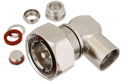 PE38245LF/HS is a N male right angle to 7/16 DIN male right angle cable using RG214 coax. This Pasternack N male right angle to 7/16 DIN male right angle cable assembly uses a 50 Ohm N for connector 1 and a 50 Ohm 7/16 DIN for connector 2. N right angle to 7/16 DIN right angle coaxial cable assembly uses 90 degree right angle coax cable connector.
