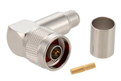 Our male N right angle to male 7/16 DIN right angle cable assembly uses a flexible cable type that is 50 Ohm. Pasternack PE38245LF/HS N male right angle to 7/16 DIN male right angle cable assembly is constructed with RG214 coax.