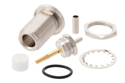 Our female N bulkhead to jack MMCX cable assembly uses a flexible cable type that is 50 Ohm. Pasternack PE3C0927LF N female bulkhead to MMCX jack cable assembly is constructed with RG316 coax.