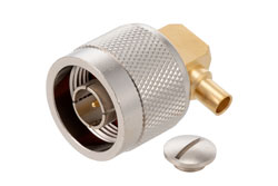 PE3W07619 is a N female 4 hole flange to N male right angle cable using RG402 coax. This Pasternack N female 4 hole flange to N male right angle cable assembly uses a 50 Ohm N for connector 1 and a 50 Ohm N for connector 2. N to N right angle coaxial cable assembly uses 90 degree right angle coax cable connector.