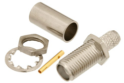 Our female SMA bulkhead to male Mini UHF right angle cable assembly uses a flexible cable type that is 50 Ohm. Pasternack PE3W00187 SMA female bulkhead to Mini UHF male right angle cable assembly is constructed with LMR-195 coax.
