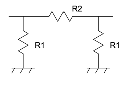 Pi減衰器は、ギリシャ文字「π」の形に似た減衰器回路を指します。Pi減衰器は、入出力でグランドに接続される一組の抵抗と2 つの並列シャント抵抗器で構成されます。