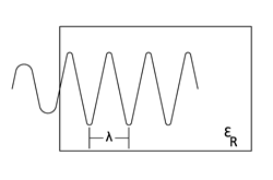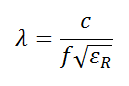 パスタナックのTEM (横方向電磁モード)波長計算器を用いて、矩形導波管内部の波長(ミリメートル単位)を求めることができます。この波長は、入力信号の周波数と誘電率(またはVoP) で算出されます。